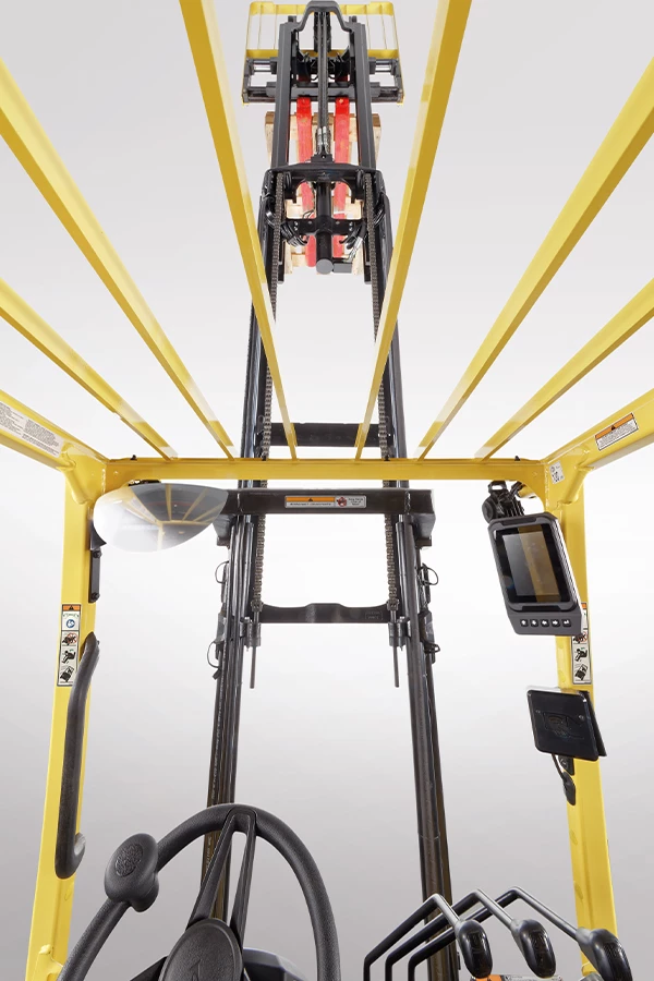 La soluzione DSS opzionale, esente da manutenzione aiuta a ridurre la possibilità di ribaltamenti e ricorda agli operatori la necessità di adozione di comportamenti sicuri controllando le condizioni di funzionamento e limitando automaticamente le funzioni del carrello al rilevamento di condizioni potenzialmente non sicure.