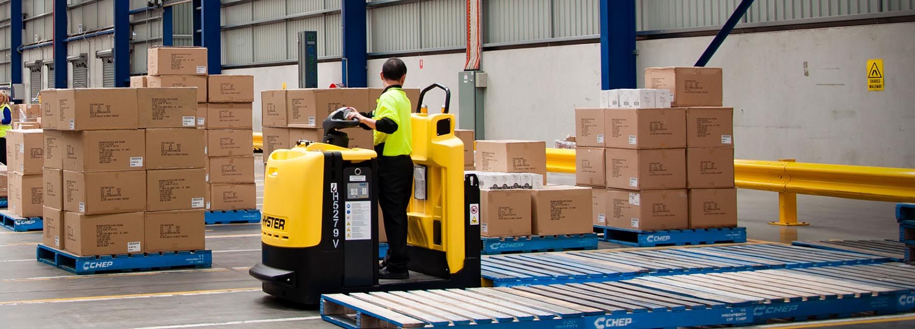 Hyster risponde con movimentatori di pallet doppi e attrezzature rotanti installate direttamente in linea di produzione, per ottimizzare i flussi di carico e scarico.